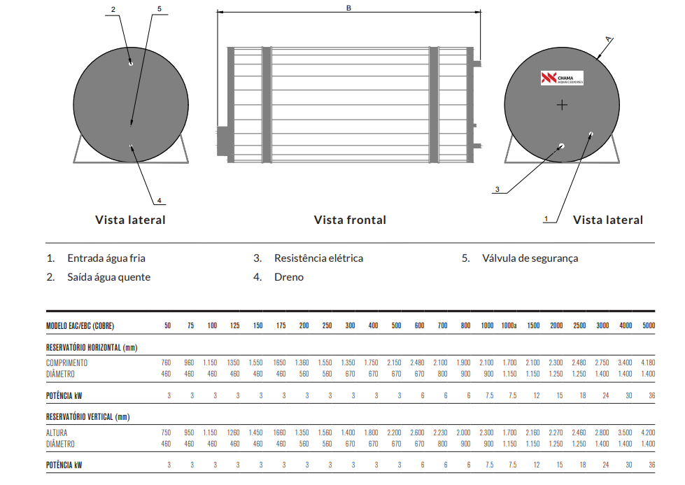 RESERVATORIO CHAMA TERMICO SOLAR COBRE ALTA PRESSÃO 150 LITROS HORIZONTAL